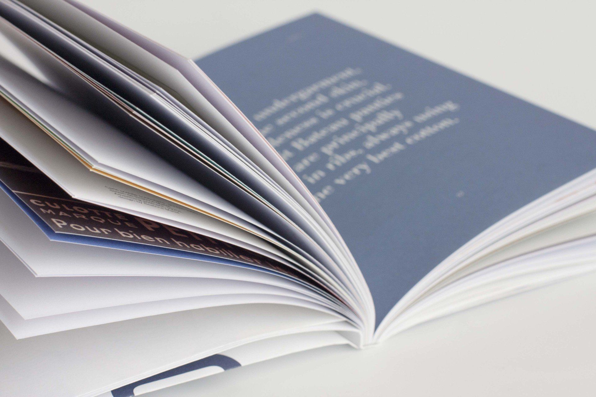 Vous souhaitez vous rendre compte en amont du rendu de votre support ? Afin de vous donner une idée de sa prise en main et de vérifier votre choix de papier et son grammage, nous proposons de réaliser des maquettes en blanc, voire un exemplaire numéro zéro quand il s’agit d’un livre, d’un magazine, d’une plaquette, etc.